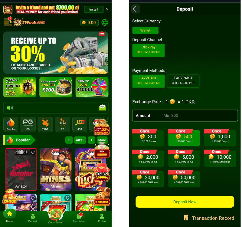 The platform supports easy deposit and withdrawal methods such as JazzCash, EasyPaisa, and bank transfers. Transactions are fast and secure, ensuring users can access their money anytime.