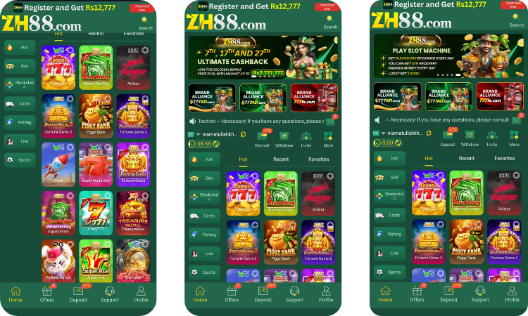 People choose ZH88 because it is a complete all-in-one gaming platform created specially for Pakistani players. It offers secure payments, instant withdrawals, free spins, welcome bonuses, and easy navigation for beginners. The app works smoothly on Android phones, loads fast even on slow internet, and gives players access to hundreds of games without charging any fee.